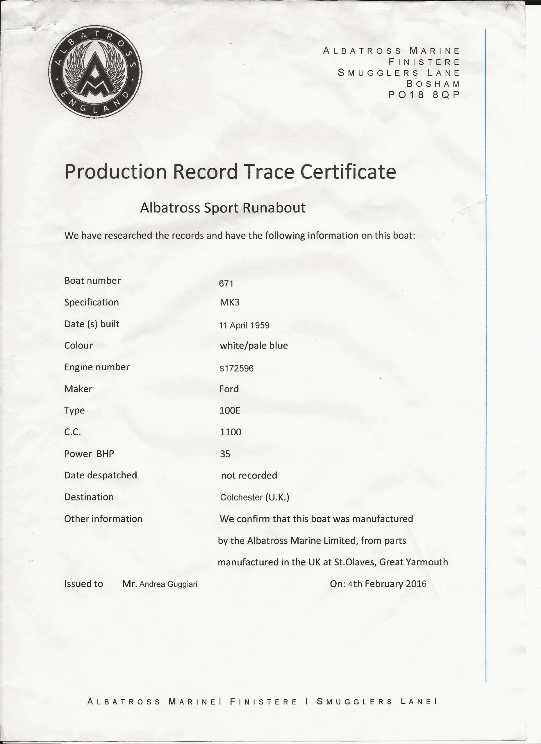 I primi modelli, come l’Albatross Mk1 runabout del 1949, erano piccoli scafi (circa 4 metri) a due posti, spesso equipaggiati con motori Ford marinizzati (come il 1172cc Ford Prefect) o il più potente Coventry Climax, molto ricercato oggi.